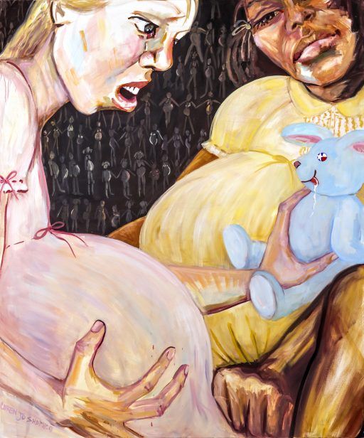 Their Instagram intro reads, “Queer, feminist artist and psychotherapist dedicated to challenging racism, misogyny, sexism, and fascism.” Focusing on the injustices and atrocities of modern-day society, C.J. Shapiro’s work is impressive. You might be uncomfortable with the subject matter or the startling images, but Shapiro’s oversized canvases are undeniably thought-provoking conversation starters, putting societal issues right in your face.