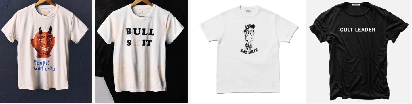 A terrific source for searching out vintage graphic t-shirts is Strike Anywhere Vintage T-Shirts. Also, one CRUSH Reader suggested you check out Urban Outfitters vintage store. Sources for new graphic t’s: Imogene + Will (for American-made all cotton t’s out of Knoxville, TN), Hiro Clark (out of California, for t-shirts with sly sayings as well as high quality plain t-shirts) and Jinji Paris (for one-offs and special t-shirts, as well as other cool shirts).