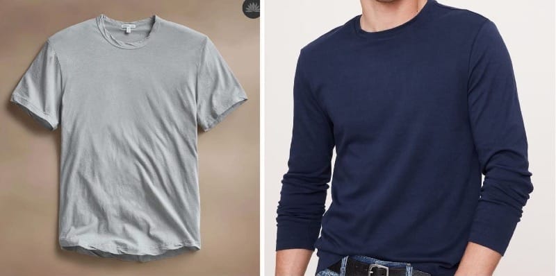 In aedition to the guy in front of me at the JCrew Factory Outlet Store, a number of CRUSH readers mentioned James Perse as a source for t-shirts ($85 to $165), citing their wide range of style offerings and colors: “Pricey, but soft reliable go-to’s and the dusky shades of gray-blue are cool.” Another CRUSH Reader is a big fan of the Banana Republic Luxe Long Sleeve T (usually $50 but it looks like they might be on sale): Love these for all occasions. Come in tall sizes too. Their slim shirts in tall fit close to my body so I don't look like I'm wearing a boxy camp shirt.” I should also mention that Sunspel makes a classic t-shirt ($98) in a range of colors, and this is Conan O’Brien’s favorite t-shit (and he’s a bit of a connoisseur of t-shirts, as many comedians are, given it is pretty much their uniform).