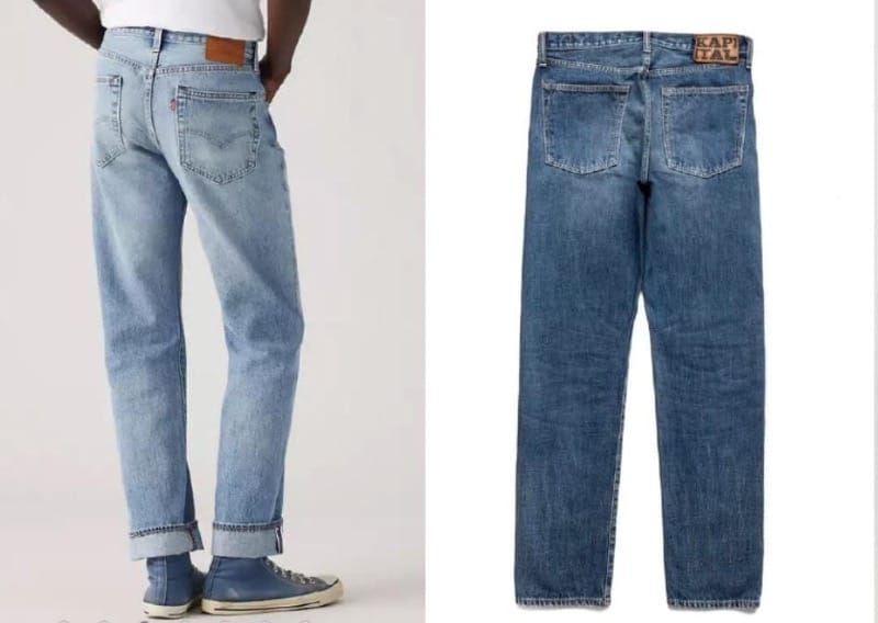 All of the jeans shown and linked to above are favored by CRUSH Readers and are some variation of straight leg with stretch, except for the Levi 501’s above, which don’t have stretch and the Kapital jeans (below).