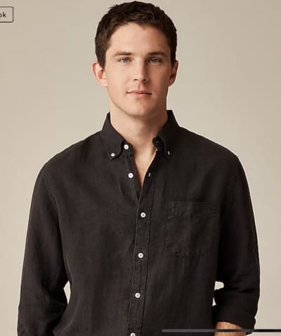 Of course you could just go with a traditional pointed collar linen shirt and — truthfully — you would look better than 90% of the gentlemen out there. If you’re going to do that you could go with a perfectly good one for a bargain from Uniqlo ($39.90) or a fine-looking one that’s a step above from Banana Republic ($50), or you could get a really sharp looking, less relaxed pointed collar linen shirt from Todd Snyder (hopefully in his dark navy) ($158). But I’m telling you, the Sid Mashburn spread collar and the Todd Snyder and OuterKnown camp shirts (written about above) are a bit sexier. And isn’t that important to you? (It is to me.) Whatever you do, though, I beg you, do not get JCrew‘s best selling men’s button-down linen shirt. Why? Because it’s button-down, for god’s sake, which defeats the purpose of wearing linen — the breeziness of it. Button downs are high school. Button downs bring to mind your Uncle Milton, the accountant. Not that there is anything wrong with being an accountant, mind you. But even if you are one, why would you want to go out to dinner dressed like one?