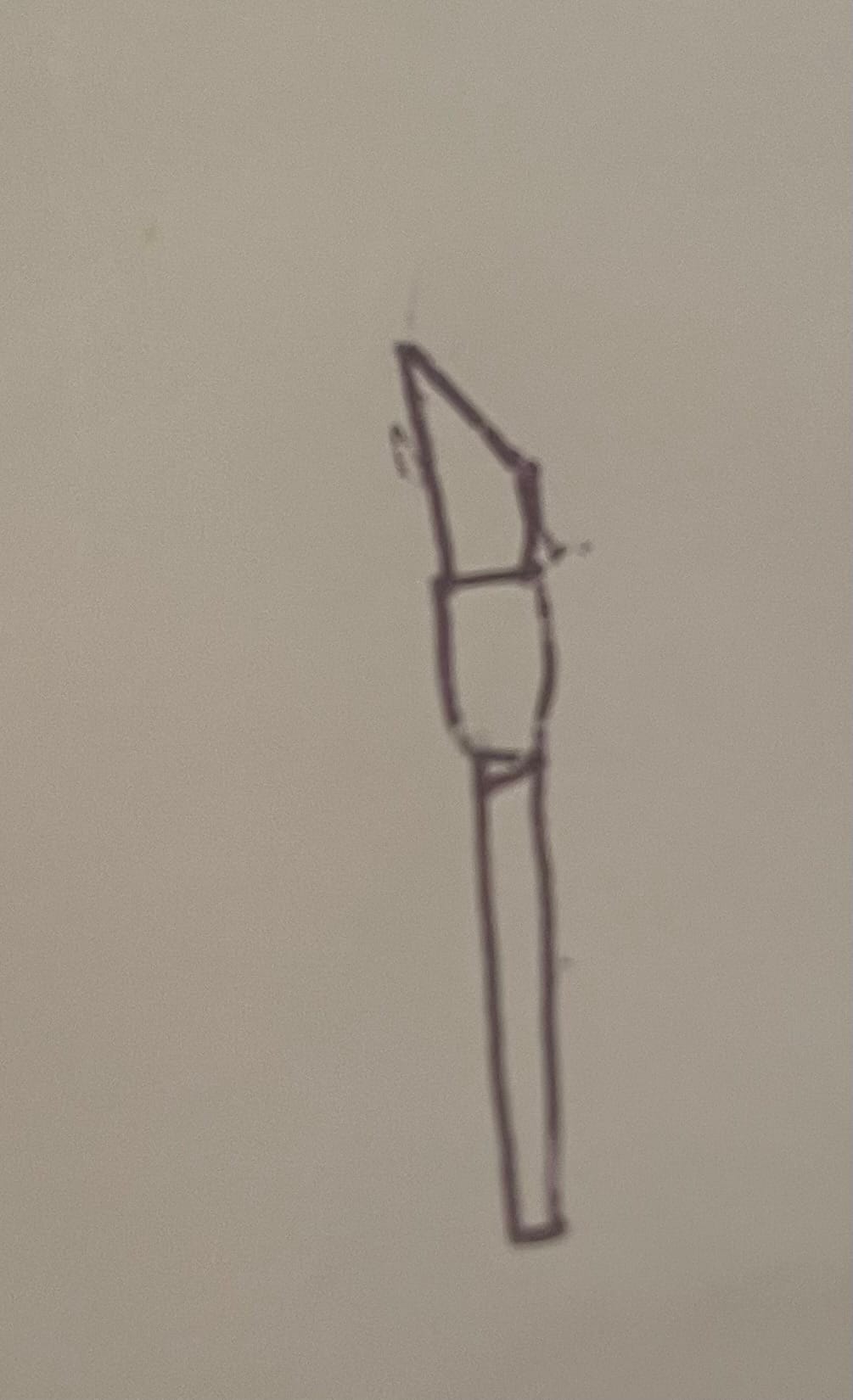 “It’s all about the brush,“ she said, “it has to be angled and very stiff.” Taking a pen out of her purse, she drew this on the back of my program: