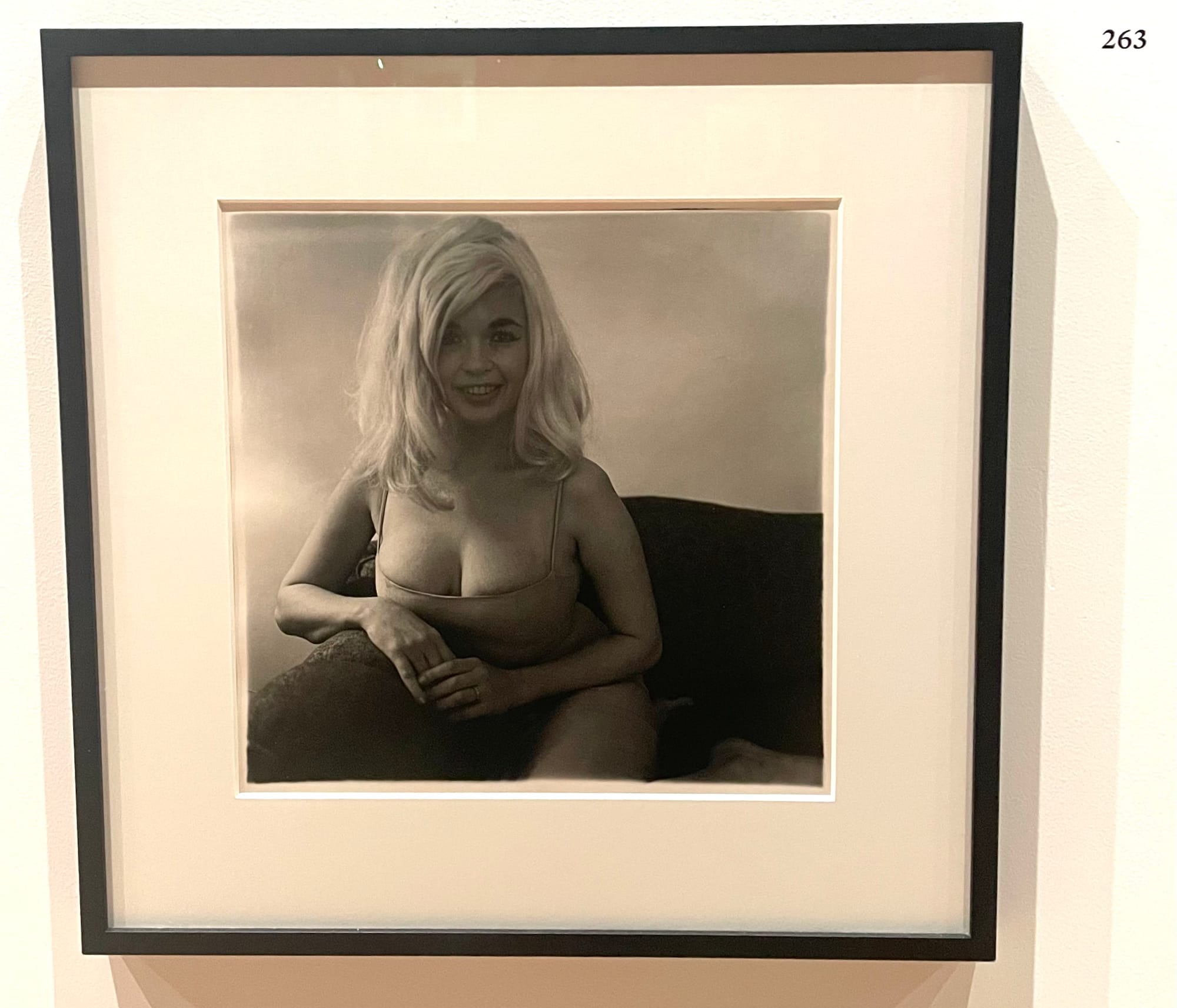 It was then that another lost traveler realized that some of the pictures were purposely hung too high or too low for us to see. “Can you see that?” one woman, who appeared to be no more than 5’4,” asked me. “No,” I said, reaching my arms straight up, directing my iPhone camera at, as it turned out, Mr. And Mrs. Howard Oxenberg, NYC, 1965. Then, brining it down to take a look, I offered, “Here, do you want to see the picture I took of the Arbus’ picture?”
