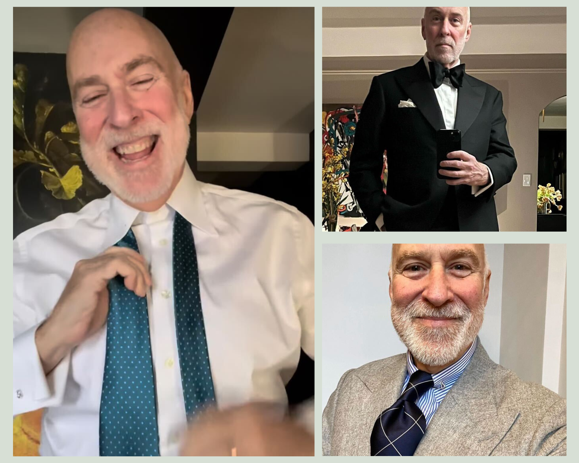 Chuck Pollard starts almost all of his reels with an a happy-feeling "Hey everybody, hope you're all well!" He then moves into a brief and celebratory explanation of what he's wearing that day – why he has paired this particular tie with that particuar suit and shirt. He is the Founder of SARTO, a quarterly publication that explores the habits and habitats of refined gentlemen. He is joyful because he loves to "turn it out," as he says. Which to him often means a kipper tie, which I've learned since following Pollard is a style of tie that was fashionable in Britain in the mid-60's to 70's and is known for being colorful and wide. Pollard is a proponent of dressing "for yourself" and dressing conscientiously – deciding the face you want to show the world. The face he chooses to show the world is friendly, warm, cheerful, beautiful and civilized. He is sophistication wrapped in warmth and good wishes.