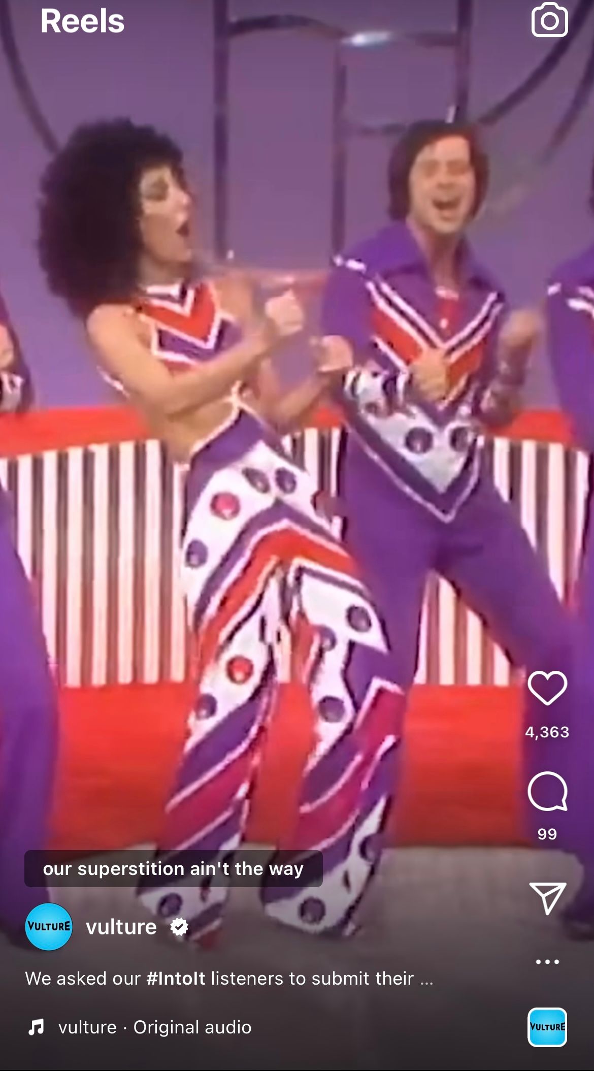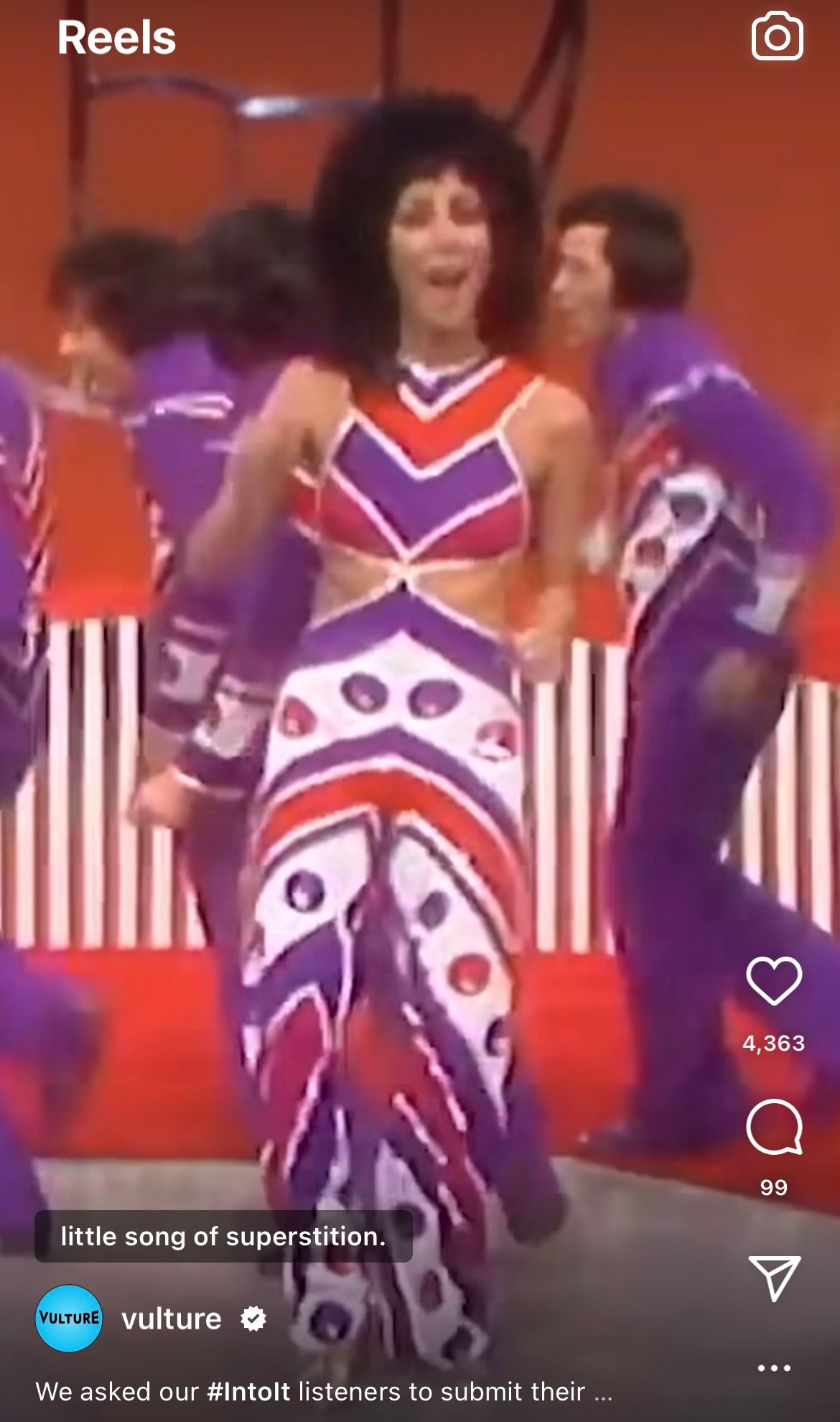 @Vulture on Instagram Watch it here. A dream episode of The Cher Show from 1975. Cher singing (and dancing to) one of the big hits of the decade Superstition with the Osmonds. It's groovy.