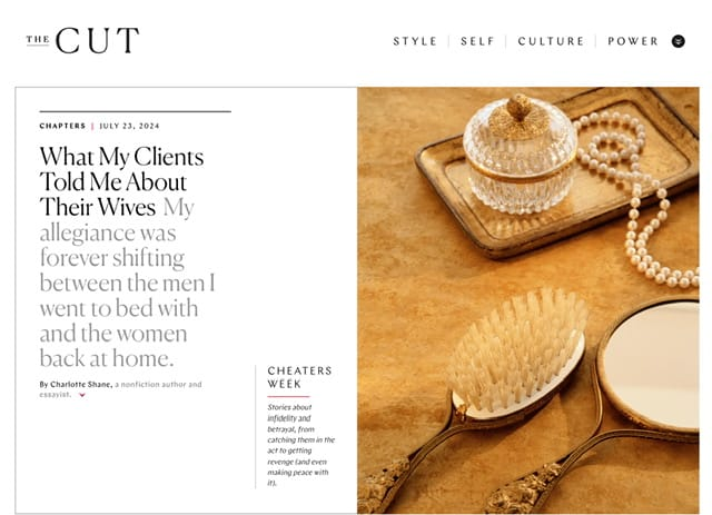 Of course, sex is a part of the mix in understanding romantic relationships. For that reason, I read What My Clients Told Me About Their Wives, an excerpt from a book written by Charlotte Shane, a sex worker who writes about her professional experiences.